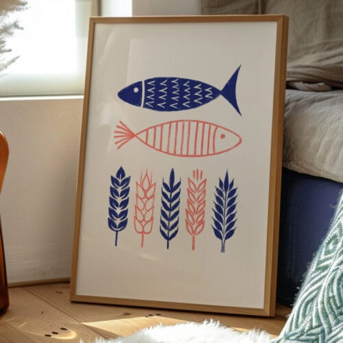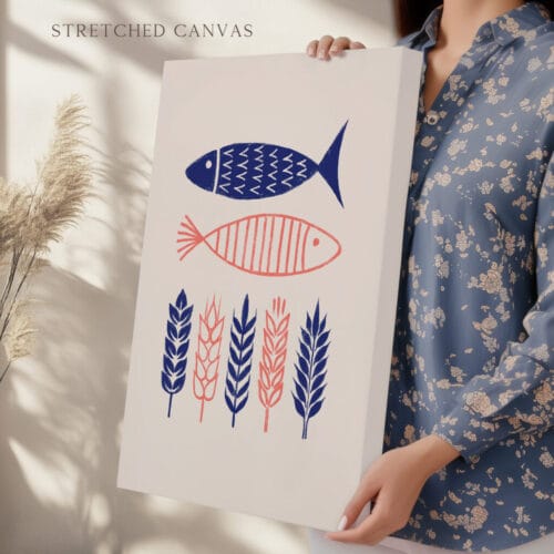 In today’s fast-paced world, minimalist art is more than a trend—it’s a way to focus on what truly matters. This 5 loaves 2 fish minimalist Christian wall art reflects the clarity and simplicity of Christ’s message. The clean lines and neutral palette fit seamlessly into any modern, contemporary, or even Scandinavian-inspired interior.