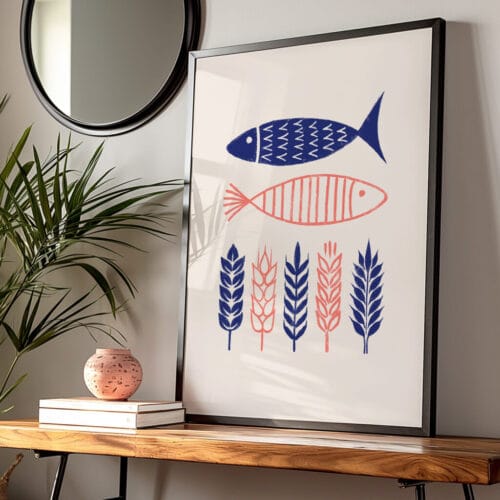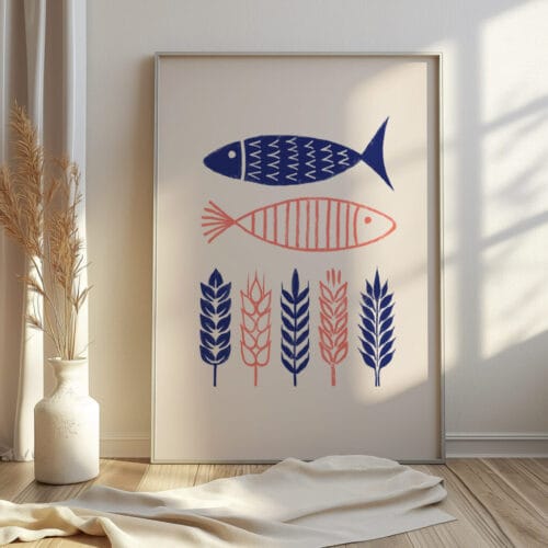Five Loaves Two Fish Minimalist Christian Wall Art