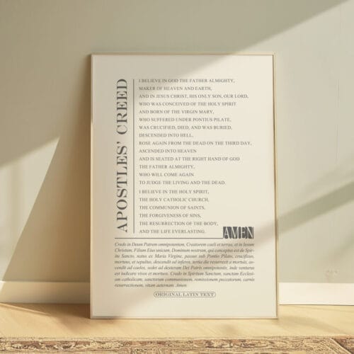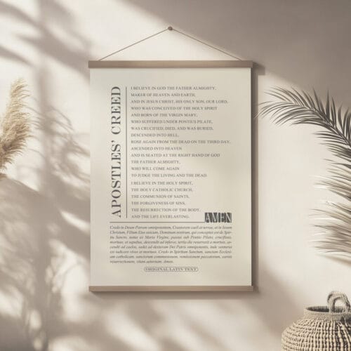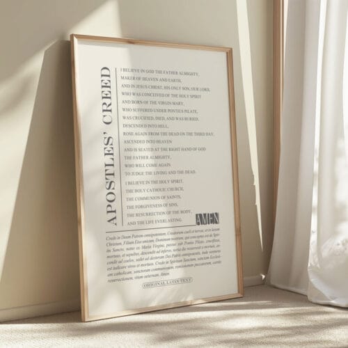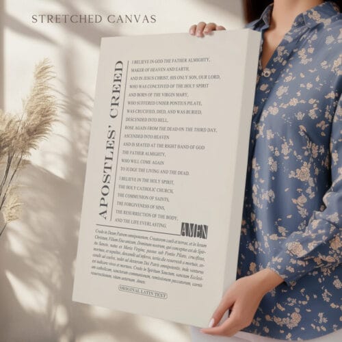 Dual Language Display: Features the full Apostles’ Creed in both Latin and English, honoring the history and heritage of Christian liturgy.