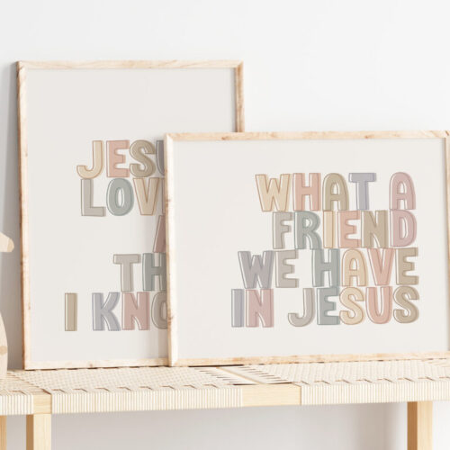 Whether displayed as a full gallery wall or scattered throughout a nursery or homeschool room, these pieces surround your child with God’s Word and promises in a playful, modern aesthetic.