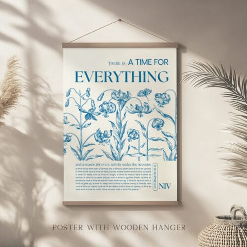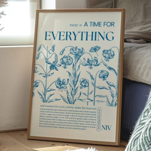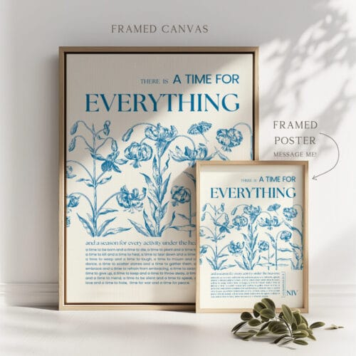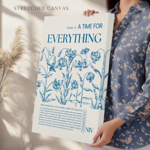 This Ecclesiastes 3:1-8 wall art features the beloved Bible passage, “A time for everything,” brought to life through a hand-drawn vintage-style floral pencil sketch. The soft, detailed illustration pairs with the poetic scripture to offer a beautiful and reflective addition to any space.