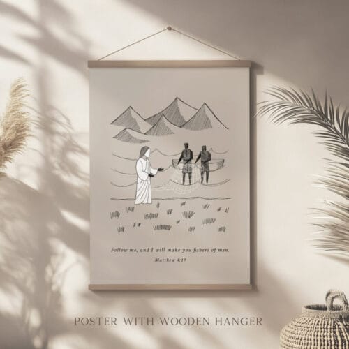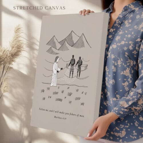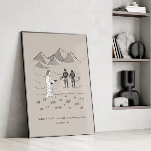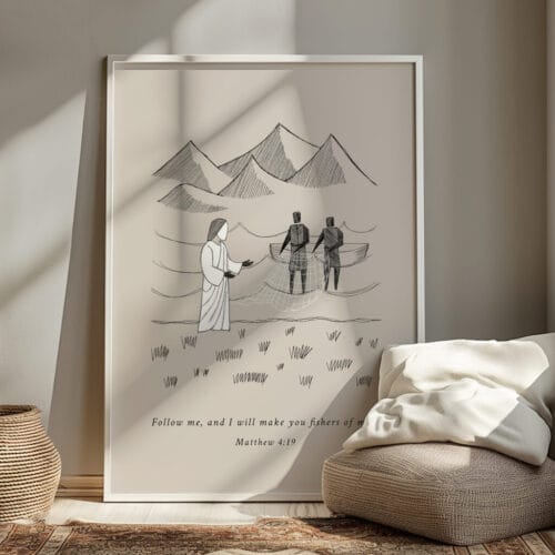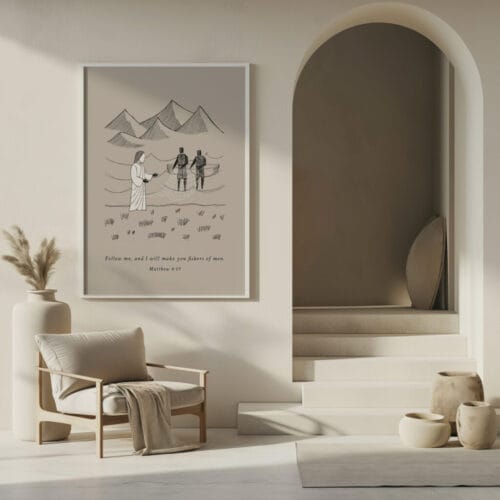 Let this “Fishers of Men” illustration from Matthew 4:19 speak truth and grace into your daily life — available as a digital download or physical print.