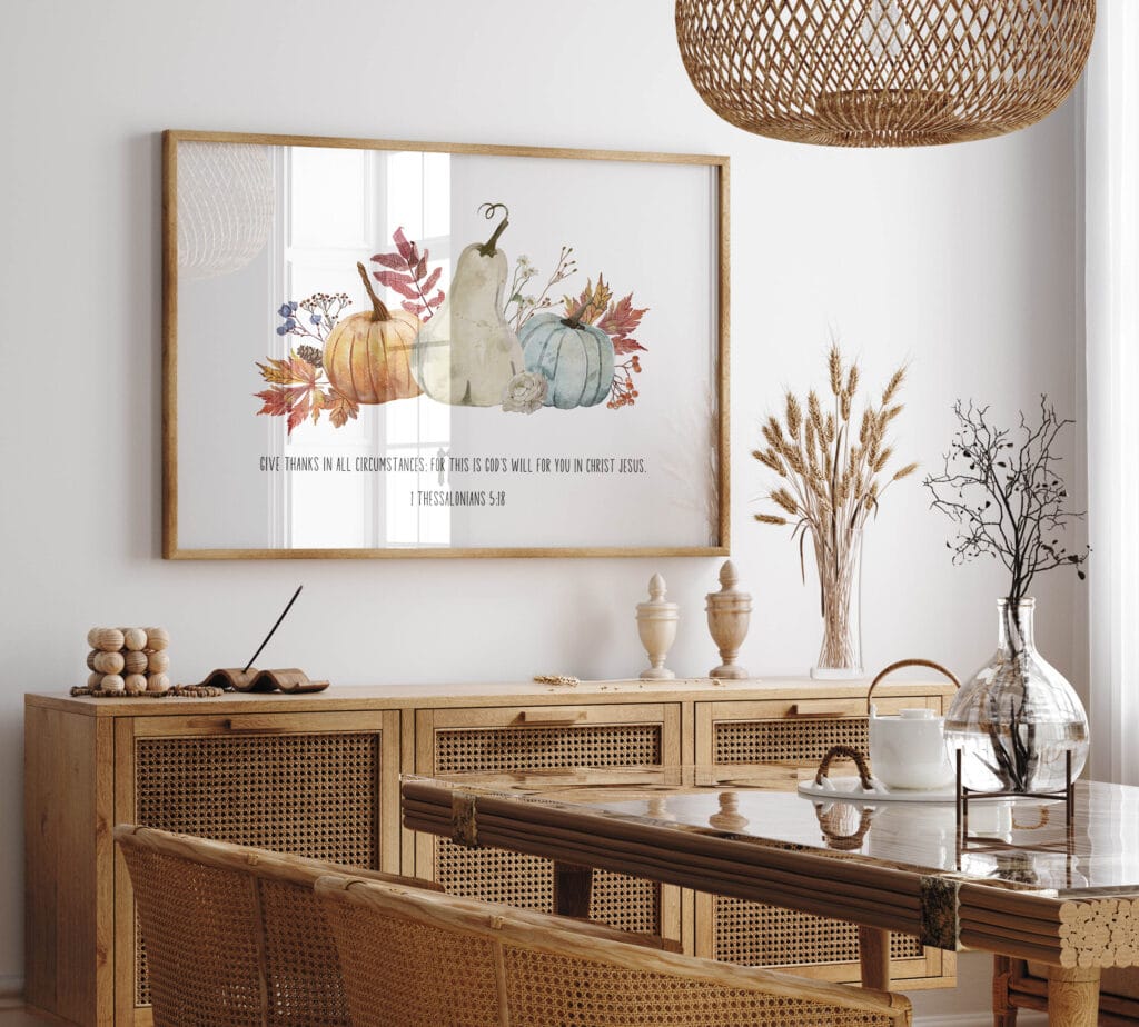 This Christian gratitude print serves as both seasonal décor and an everyday reminder to live with a thankful heart. Its blend of warm colors, autumn blessing pray theme, and elegant composition makes it an inspiring give thanks painting for any home.