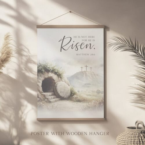 This versatile piece complements any setting, from a cozy homeschool classroom to a bright sunlit church Sunday school wall. It’s an ideal way to share the message of resurrection and God’s love with your family and guests.