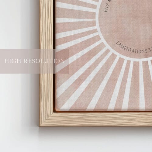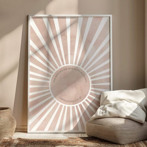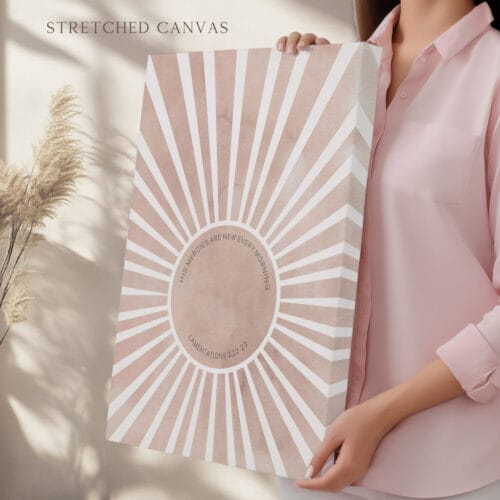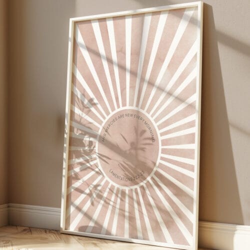 This His Mercies Are New Every Morning Boho wall art captures the comforting promise of Lamentations 3:22-23 in a serene, sunbeam-inspired design. With soft, muted tones—available in beige, sage green, and blush pink—this Christian minimalist artwork brings a sense of peace and warmth to your space.