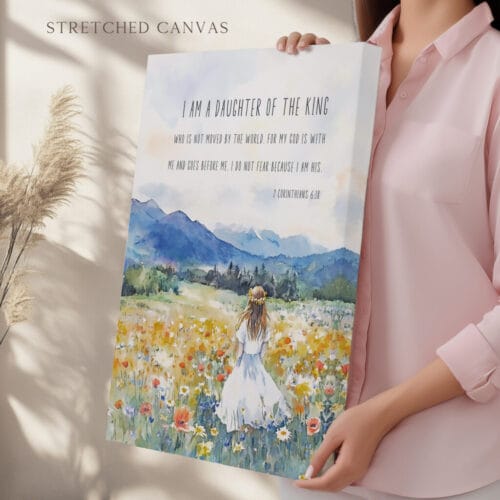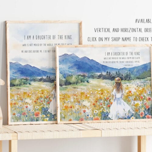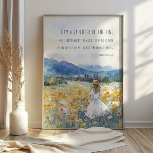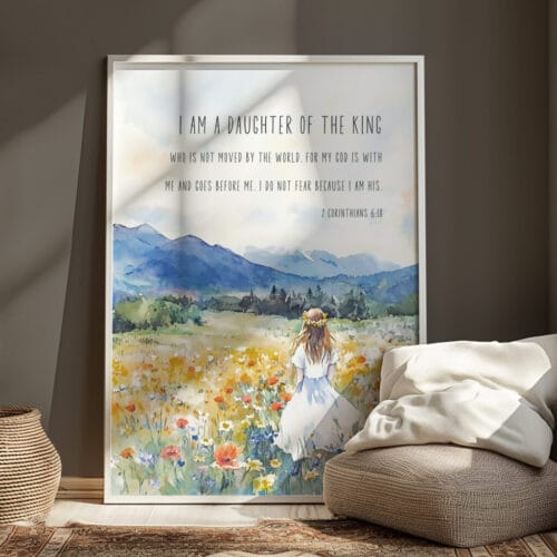 With its uplifting message and vintage-inspired charm, this I am a daughter of the king print is more than decor—it’s a spiritual keepsake she’ll grow up with.
