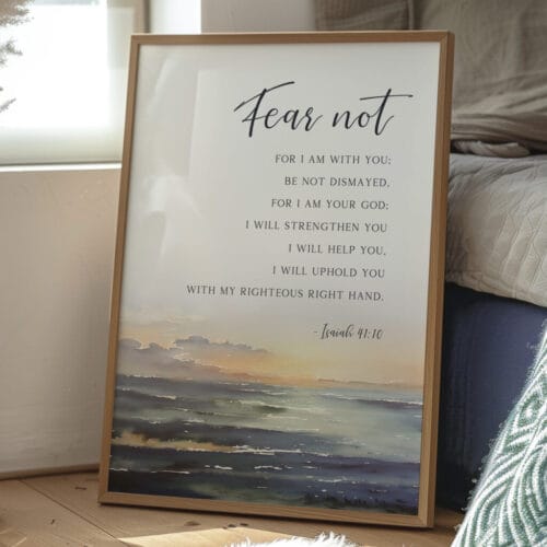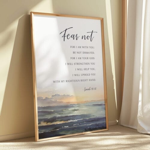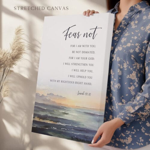 This artwork is more than décor — it’s a reminder to trust in God’s nearness. Whether you’re decorating a new space or looking for a thoughtful gift, this Isaiah 41:10 artwork is a meaningful choice.