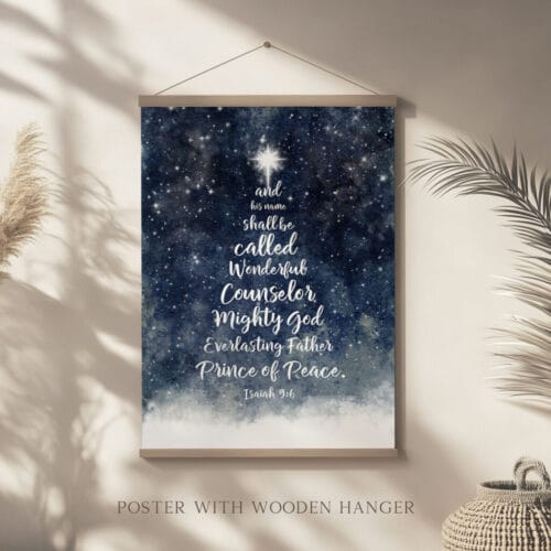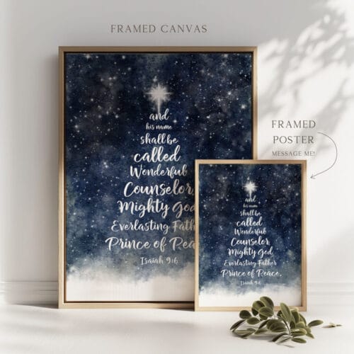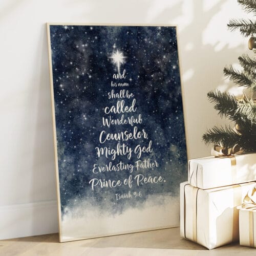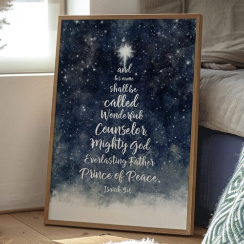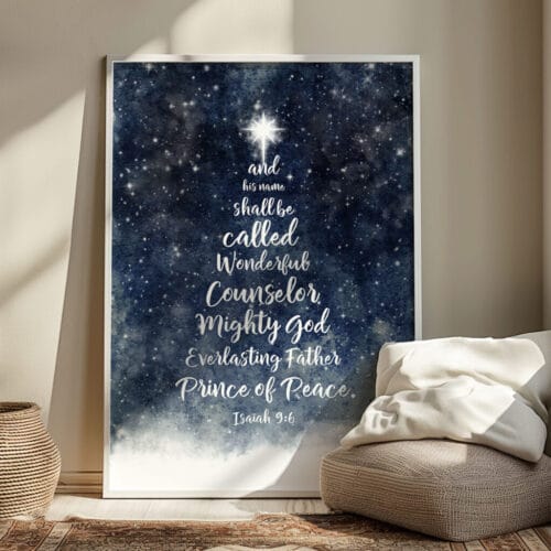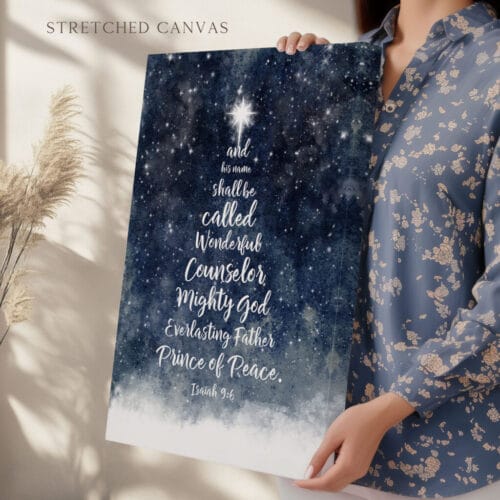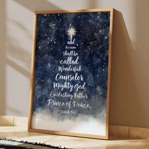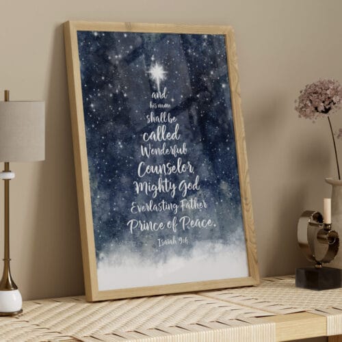 Let this Isaiah 9:6 Blue Christmas Wall Art be a beacon of truth and peace in your home this season—beautifully designed to reflect the wonder of His name and the joy of His coming.