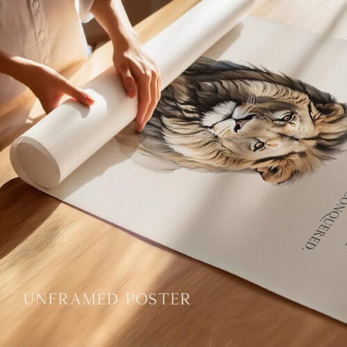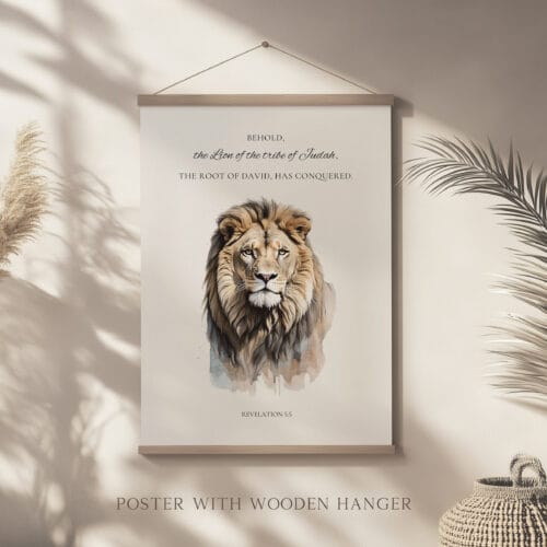 This Lion of Judah poster makes a thoughtful Christian decoration for Easter, Holy Week, or year-round display. It carries deep symbolism connected to the Jesus story portrait, end-times prophecy, and the victory of God over sin and death—making it especially meaningful as believer end day art. With its warm, neutral palette, it also works as a time-earth-tone gift for pastors, families, or anyone drawn to faith-centered artwork rooted in Scripture.