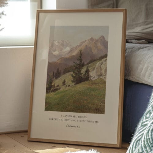 Beautiful Christian Decor: The pastoral Christian mountains and rustic tones blend effortlessly with scripture home decor, whether you’re styling a homeschool classroom, Sunday school room, or personal gallery wall.