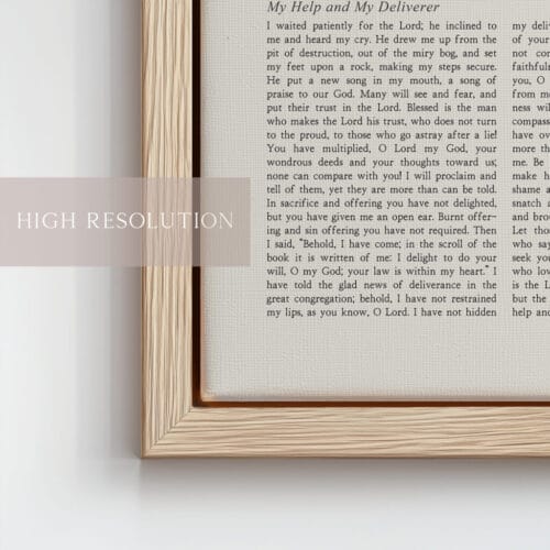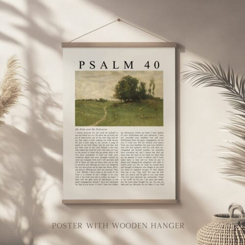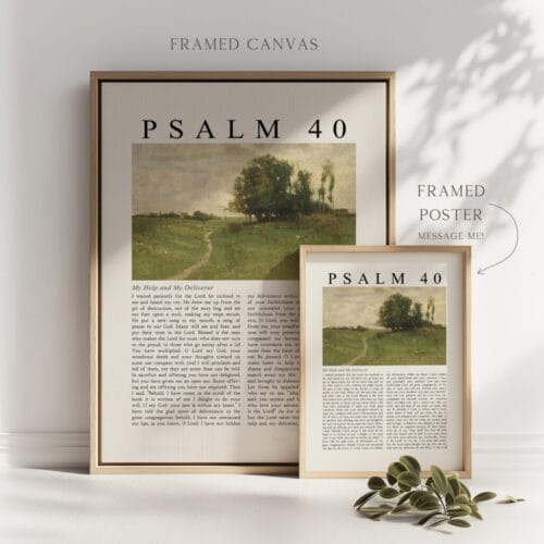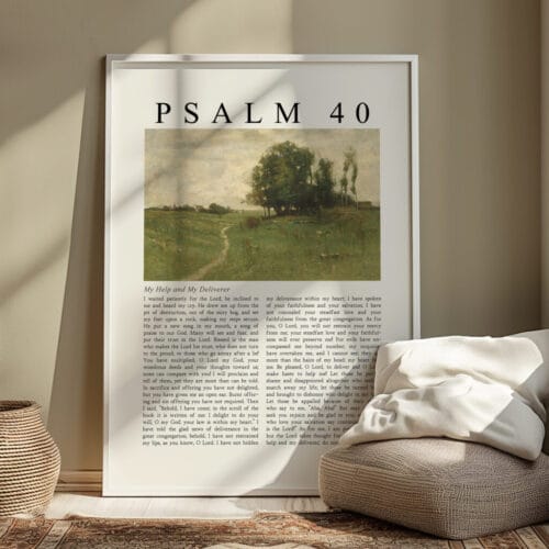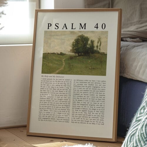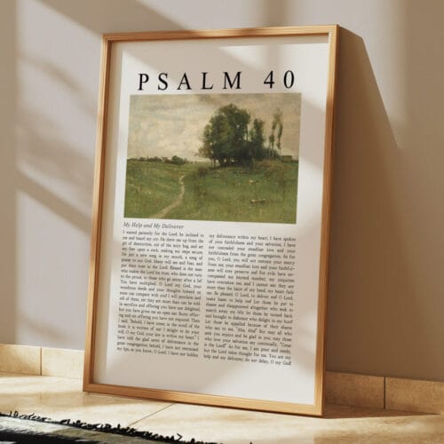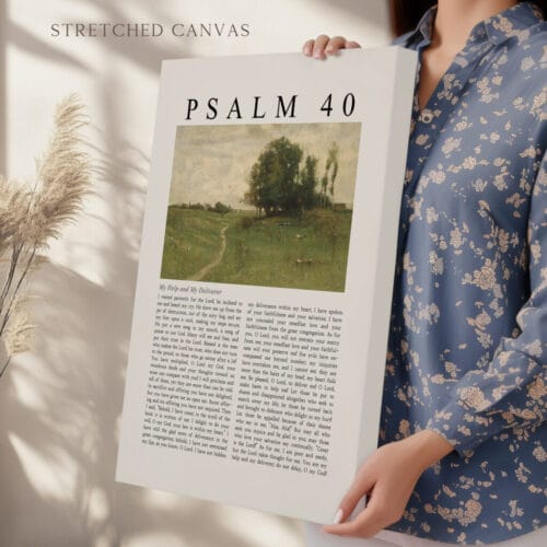 This Psalm 40 wall art pairs the words “My help and my deliverer” with a peaceful vintage landscape, offering a soul-stirring reminder of God’s faithfulness. The Scripture is delicately woven into the artwork, inviting daily reflection and grounding your space in truth and trust.