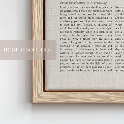 Let this Psalm 90 wall art serve as a gentle, visual echo of eternity—reminding you daily that God’s presence spans beyond time, from everlasting to everlasting.